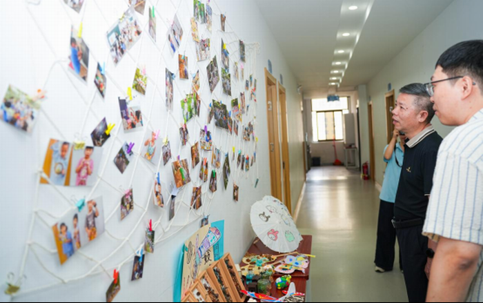 陈水树对暑托班的各个教室和活动区域进行了实地查看。每到一处,他都认真聆听工作人员介绍,详细询问暑托班的机构资质是否合规、师资力量是否充足、课程设置是否合理、安全保障是否到位等关键信息。在参观过程中,孩子们充满创意的手工作品和记录着精彩瞬间的活动照片墙吸引了众人的目光,陈水树一行不时驻足欣赏,对孩子们的才艺和暑托班的丰富活动给予了高度评价。随后,陈水树走到孩子们中间,与他们亲切交谈,关切地询问他们在暑托班的学习进展和生活感受,孩子们纷纷踊跃发言,现场气氛温馨而活跃。陈水树还贴心地为孩子们送上了精心准备的小礼物,鼓励他们要珍惜时光,勤奋学习,在成长的道路上健康快乐地前行。