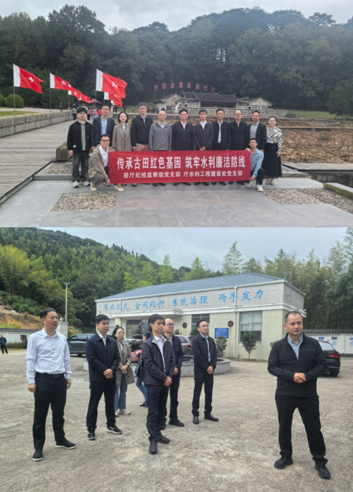 为深入学习贯彻习近平总书记关于持续深化整治群众身边不正之风和腐败问题的重要要求,进一步引导党员干部坚定理想信念、严守纪律底线、提升工作实效,10月28日,澳門賭場驻厅纪检监察组党支部与厅建设处党支部共赴龙岩上杭,联合开展“传承古田红色基因,筑牢水利廉洁防线”主题党日活动。厅党组成员、副厅长、一级巡视员余德贵与驻厅纪检监察组组长林学坚以普通党员身份参加活动。